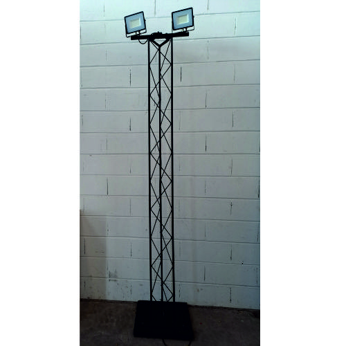 Torre metálica preta de 2,50m altura, com 2 projectores LED em preto.